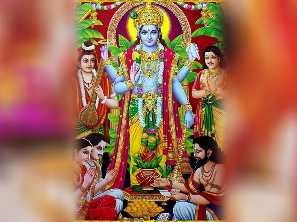 శ్రీ సత్యనారాయణ స్వామికి చేసే పూజ.ఈ వ్రతాన్ని హిందూ వధూవరులు శ్రద్ధగా ఆచరించిన వారి కాపురం దివ్యంగా ఉంటుందని పురాణాల ప్రకారం తెలుస్తుంది. విద్యార్థులు, వ్యాపారులు ఇంకనూ ఎవరు ఆచరించిననూ విజయం పొందగలరని హిందువుల విశ్వాసం. కలియుగంన లోక సంచారం చేసిన నారదుడు, లోకుల బాధలు చూడలేక మహావిష్ణువును ప్రార్థించగా స్వామి ఇటుల తెలిపాడు.